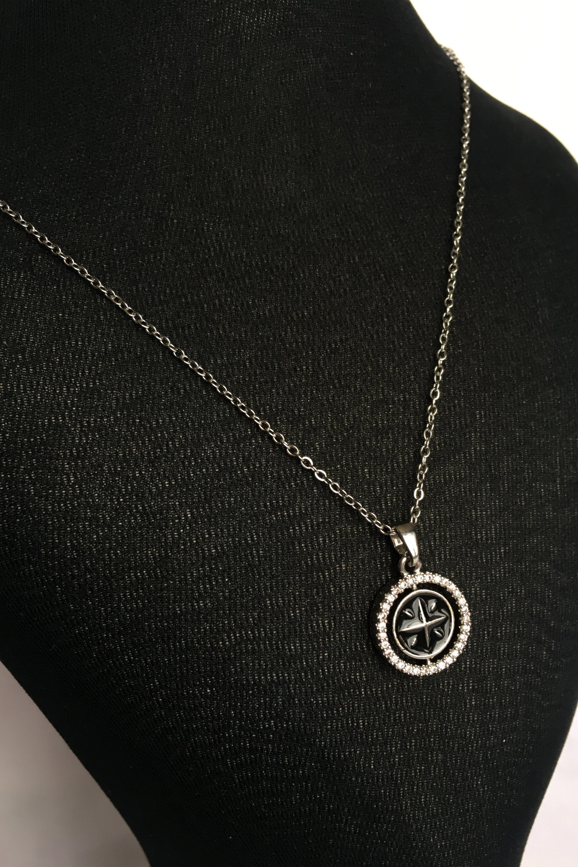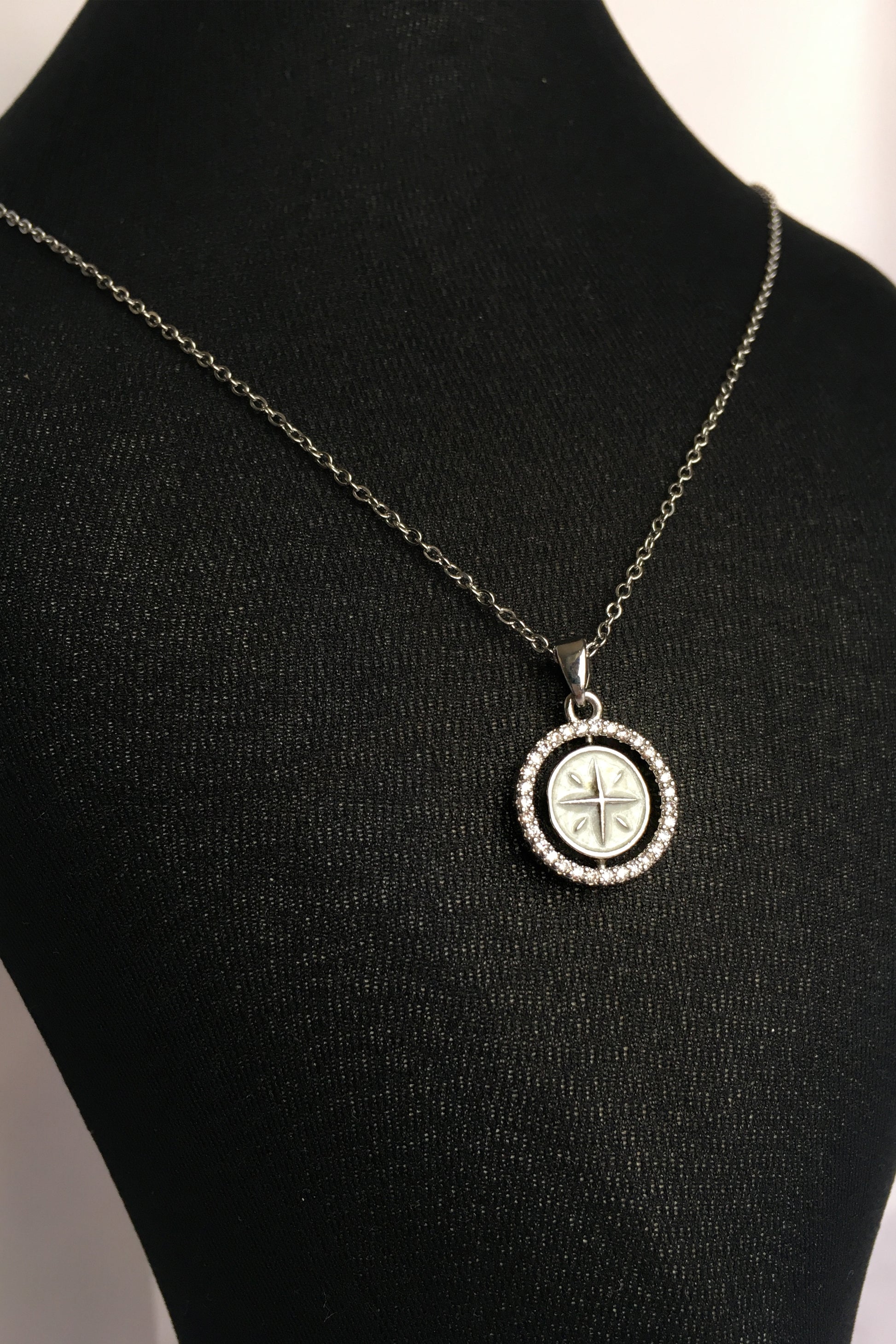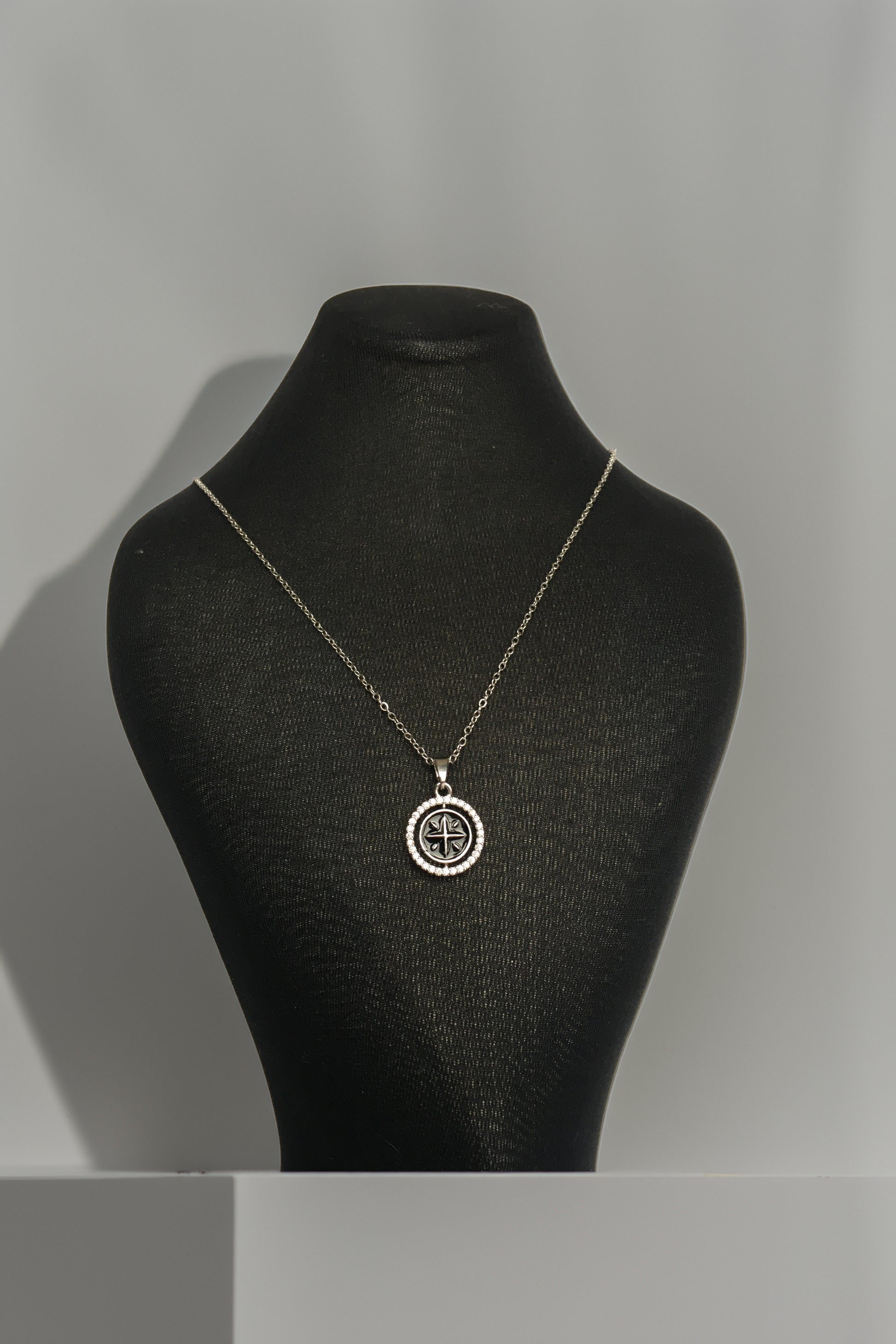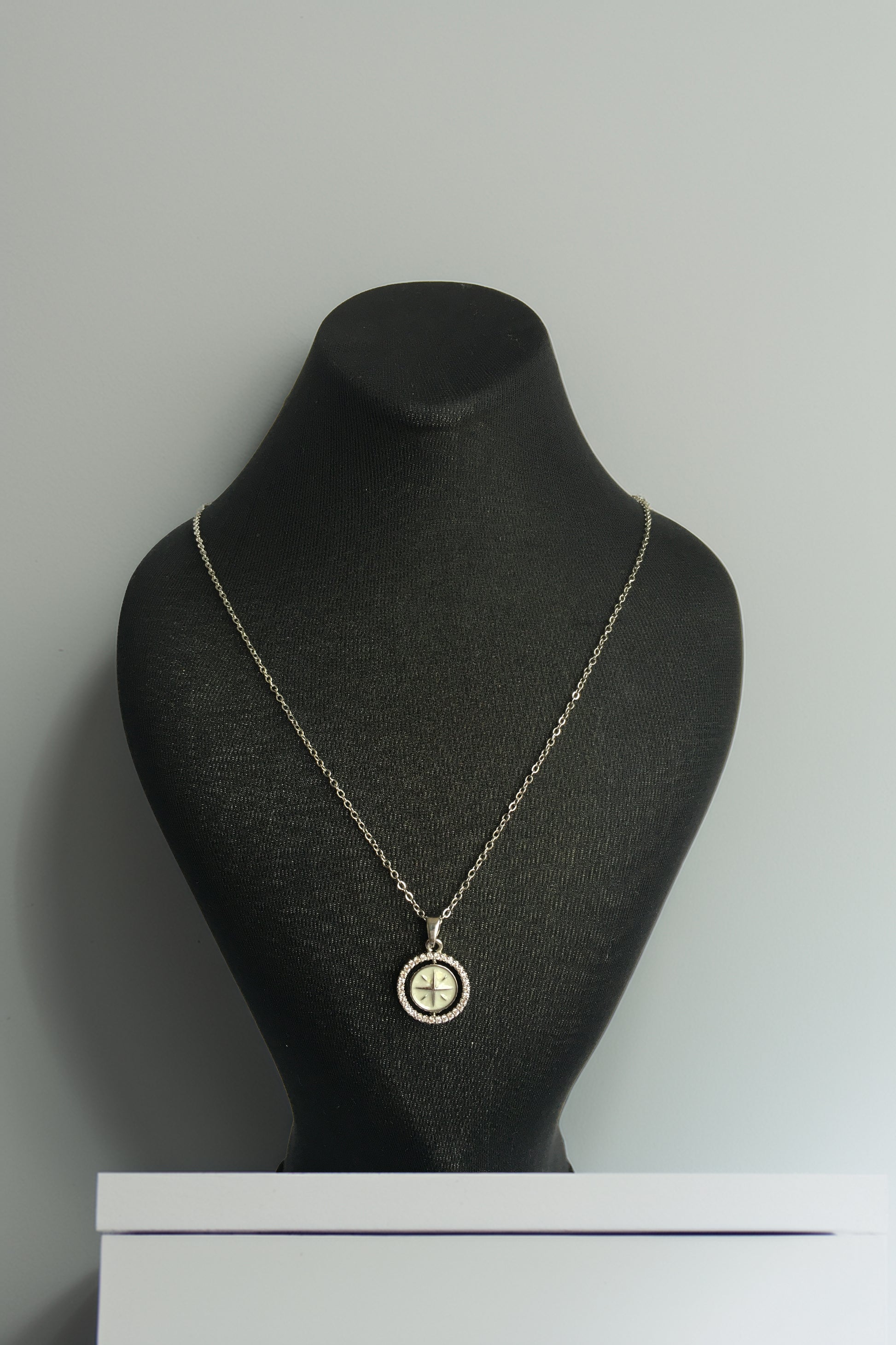 Paslanmaz Çelik Çift Taraflı (Siyah-Beyaz) Kuzey Yıldızı Detaylı Gümüş Kaplama Kolye