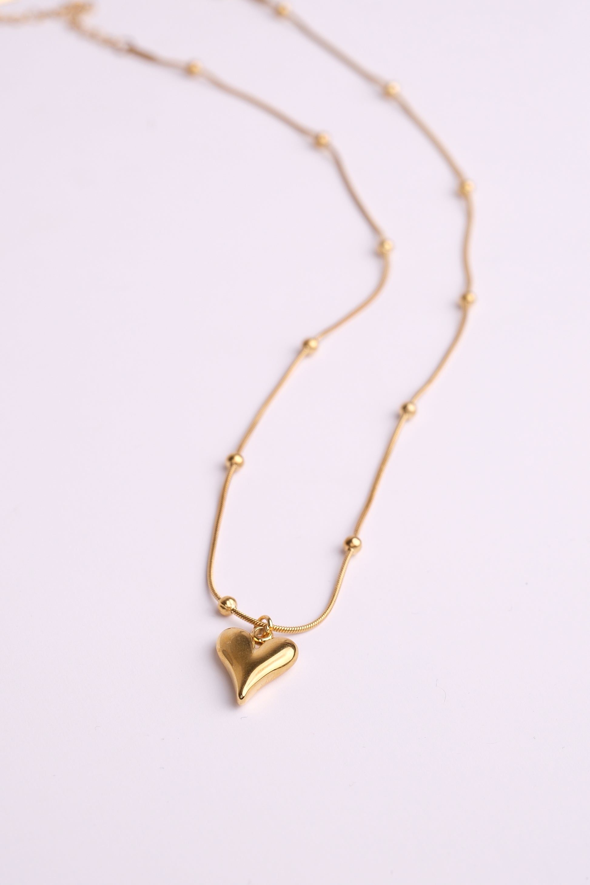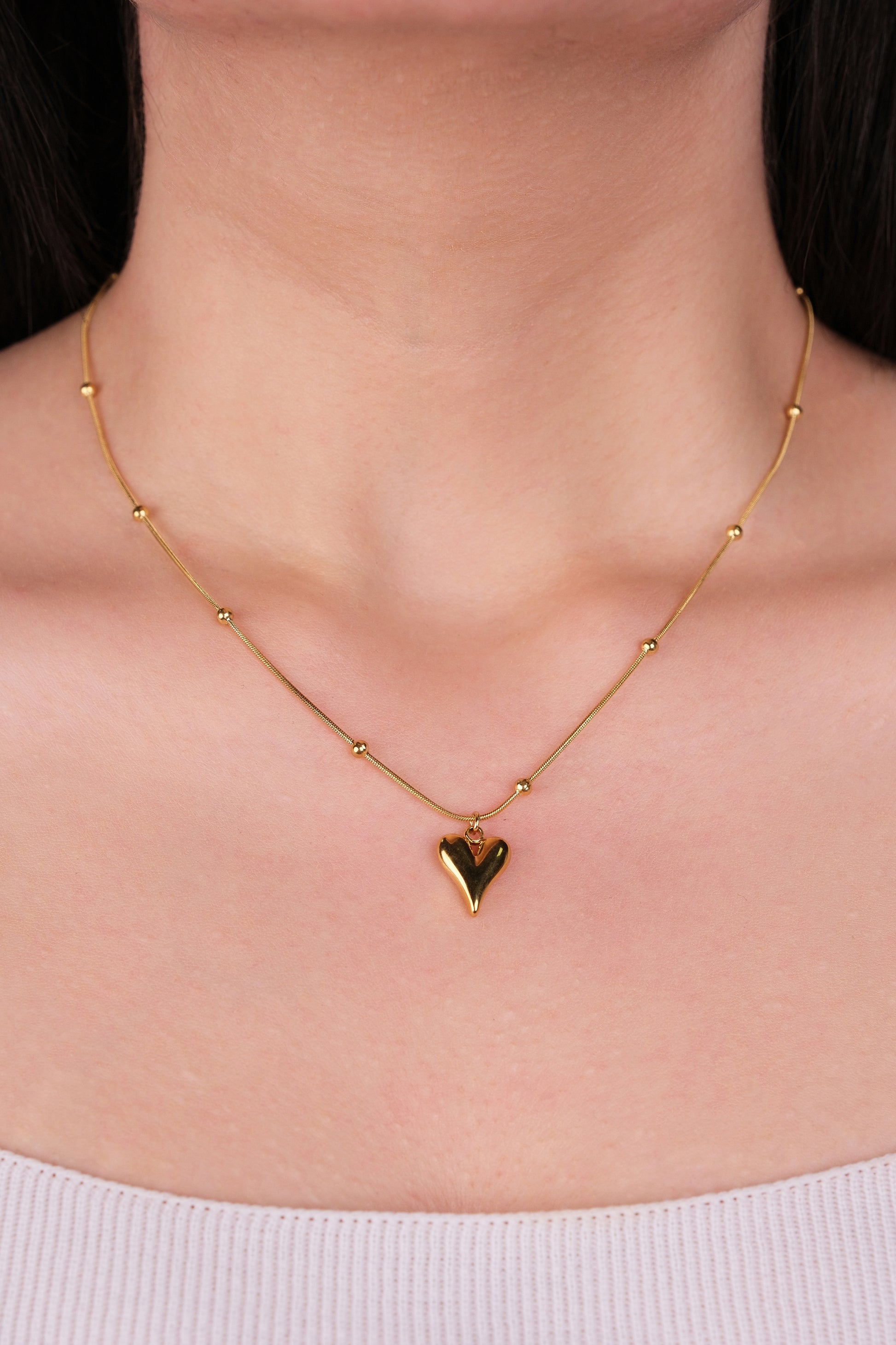 Paslanmaz Çelik Dorika Zincirli Kalp Model Gold Kaplama Kolye