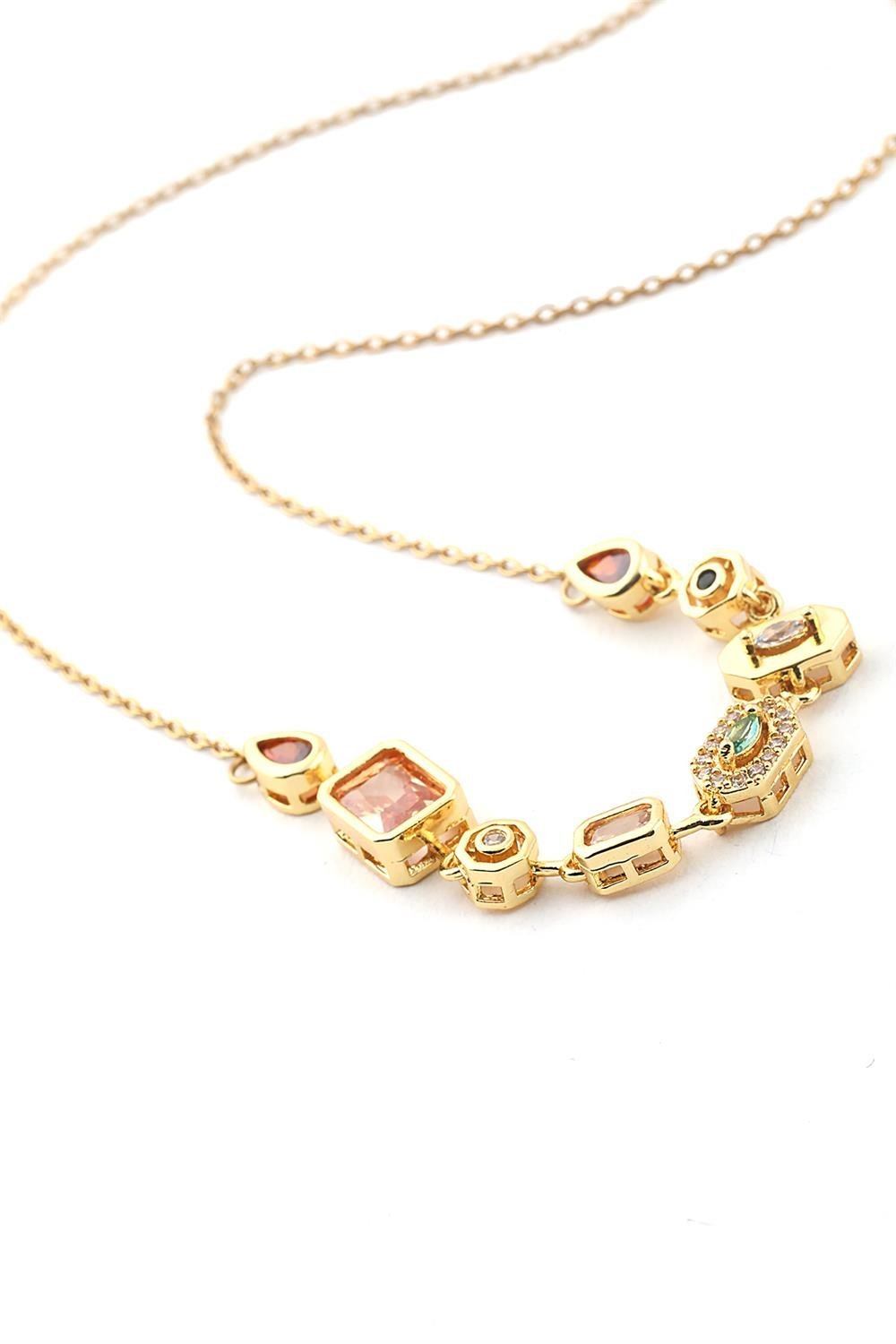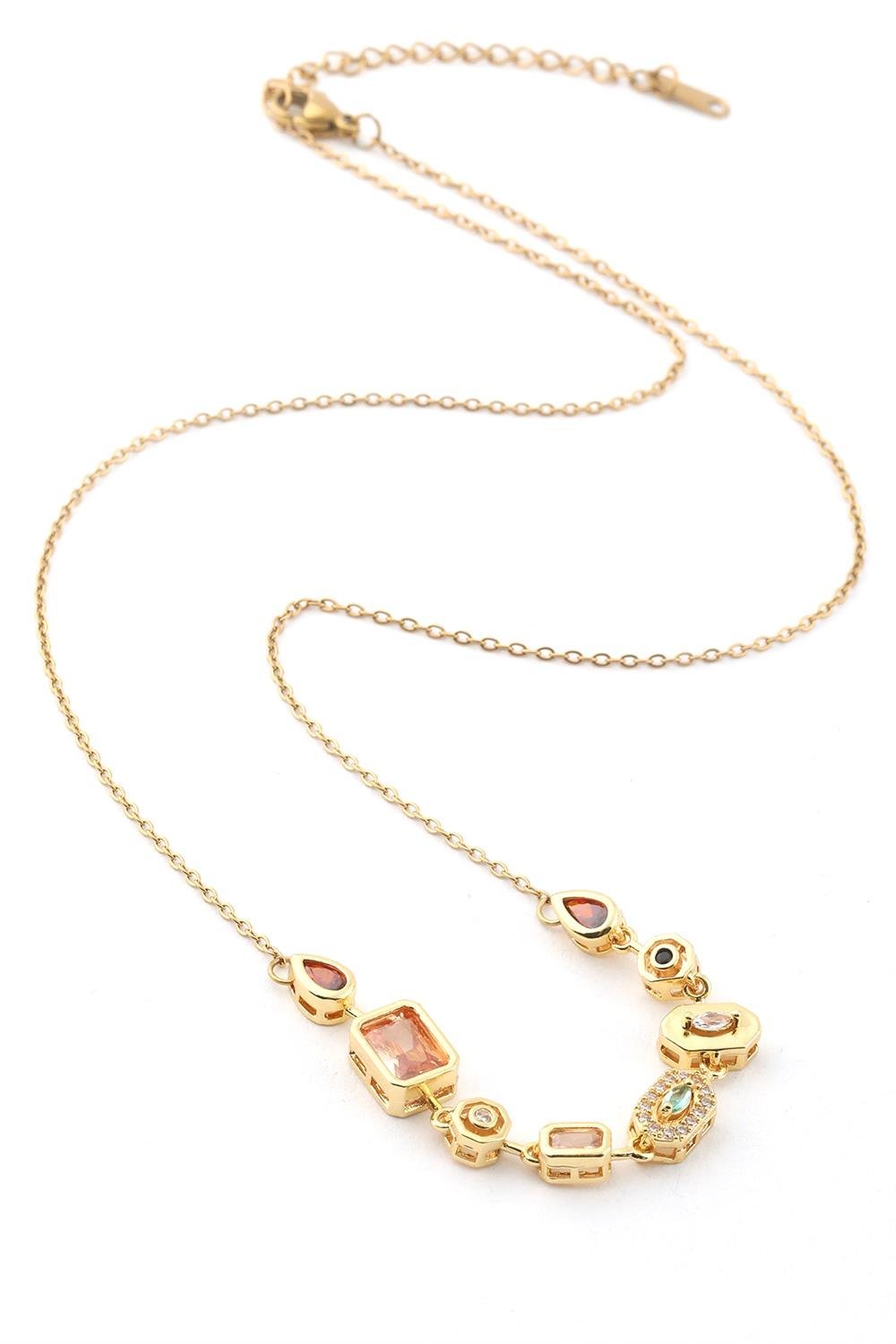 Paslanmaz Çelik Renkli Taşlı Y Kolye Gold