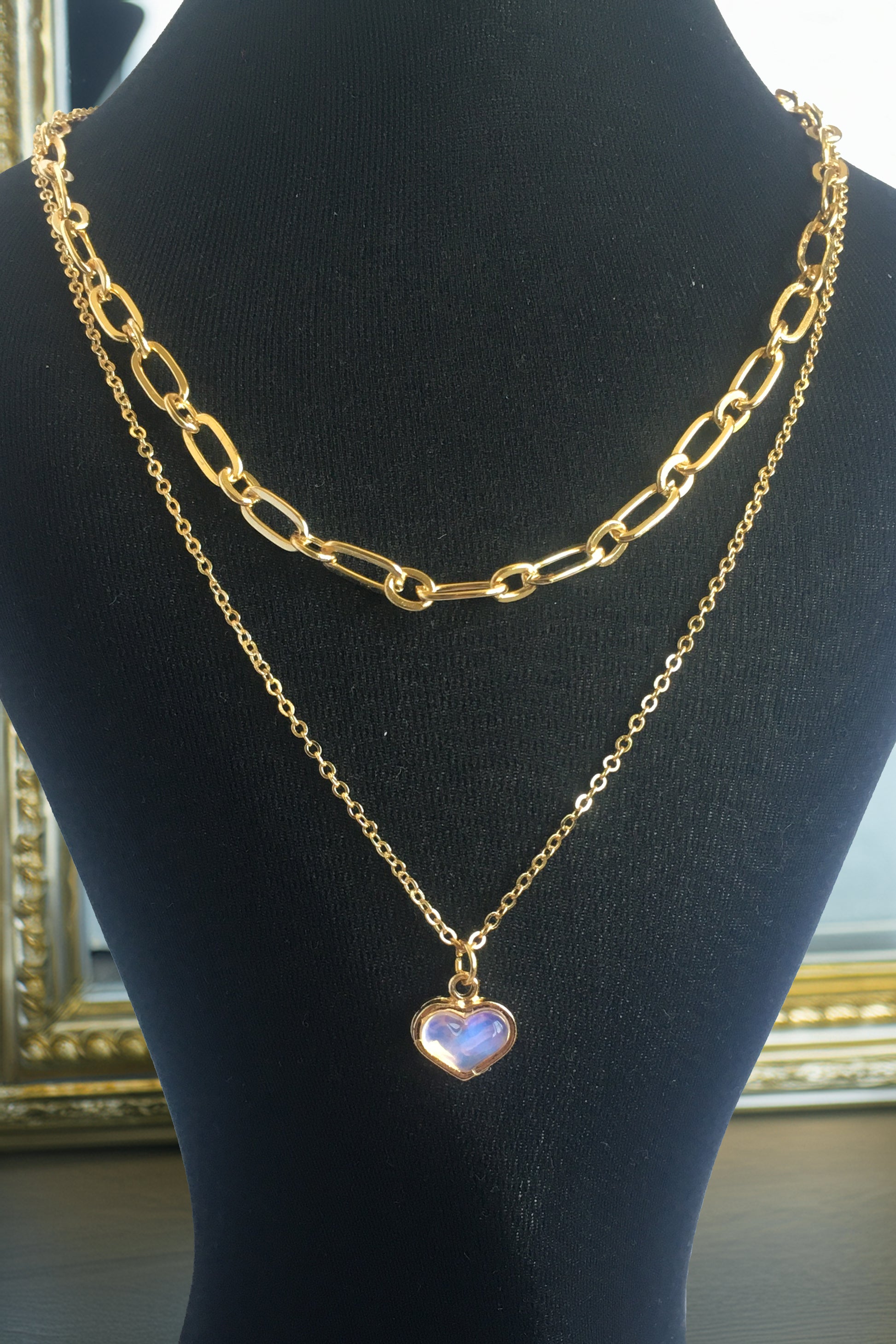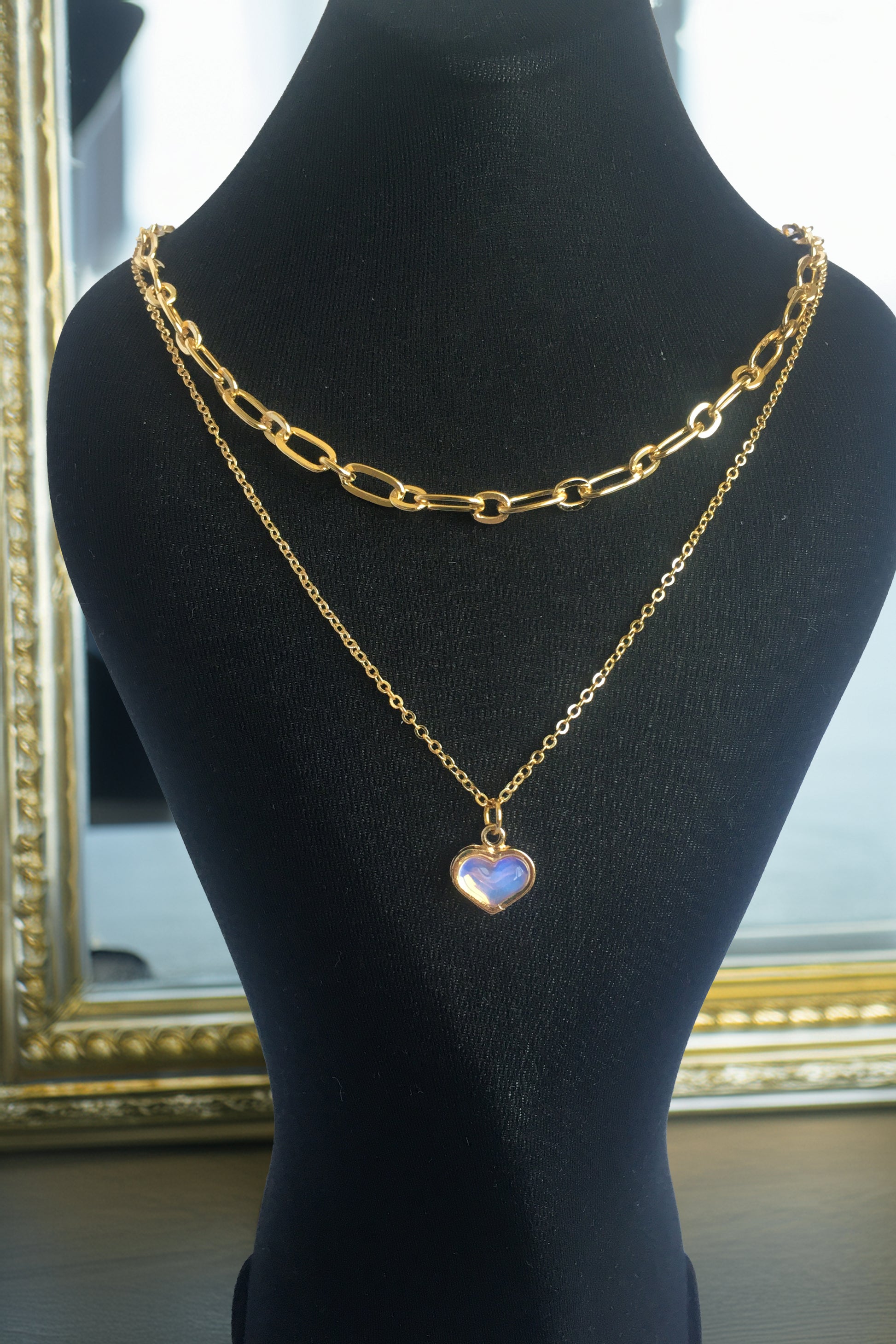 PERLİSS Pembe Sedefli – Ataç Zincirli Kolye Seti, Pembe Sedefli Yansıma Kolye, Ataç Zincirli Gold Kaplama Kolye