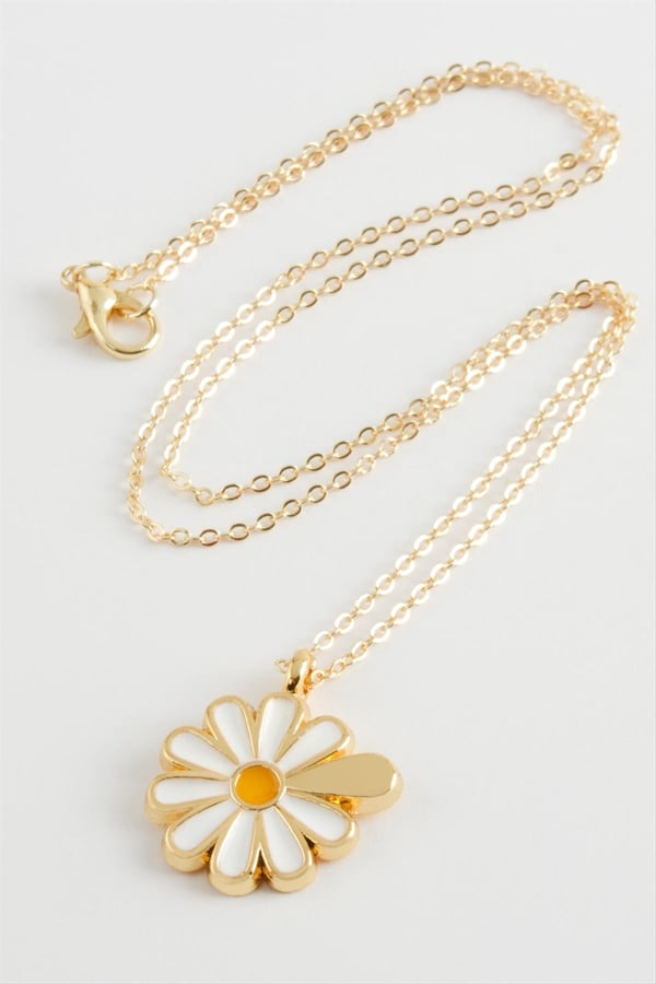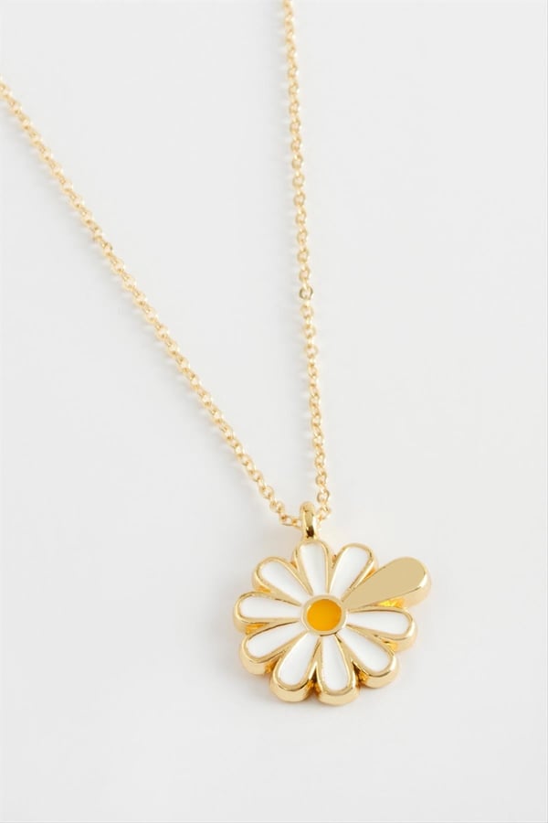 - Papatya Kolye, Gold Kaplama Papatya Kolye, Beyaz Mineli Papatya Kolye