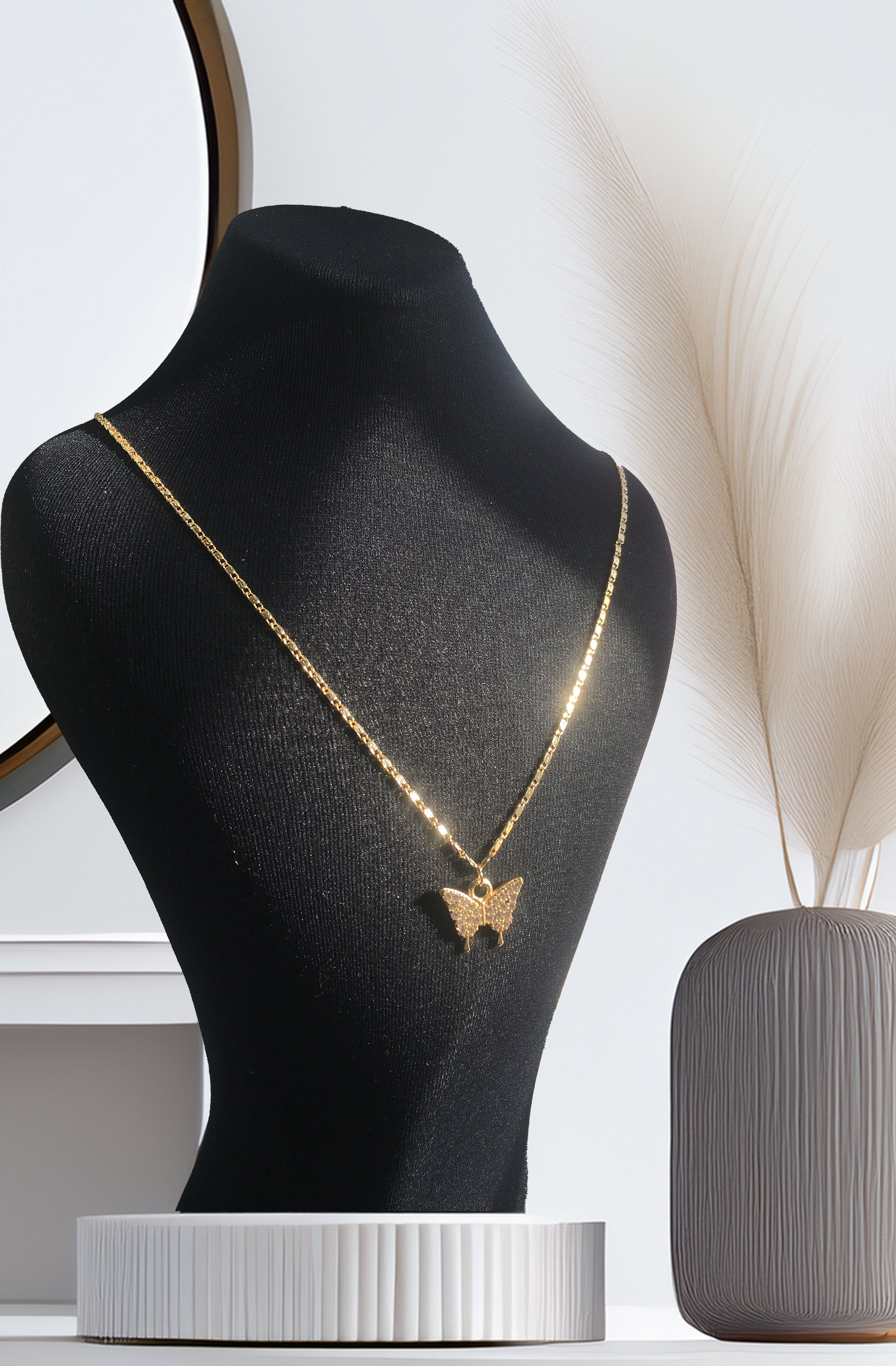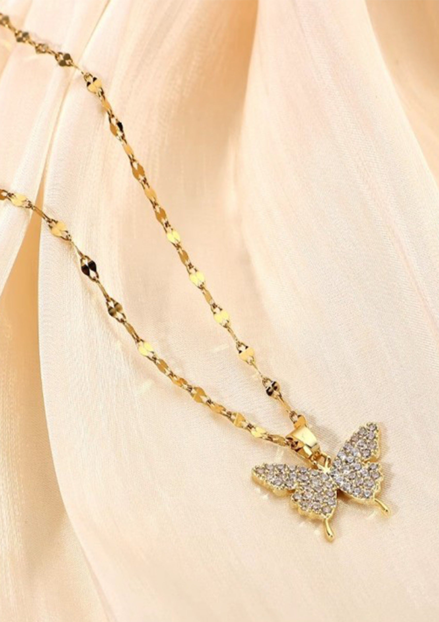 - Çelik Kelebek Kolye, Çelik Gold Kolye, Kararmaz Çelik Kelebek Kolye, Zirkon Taşlı Kelebek Kolye