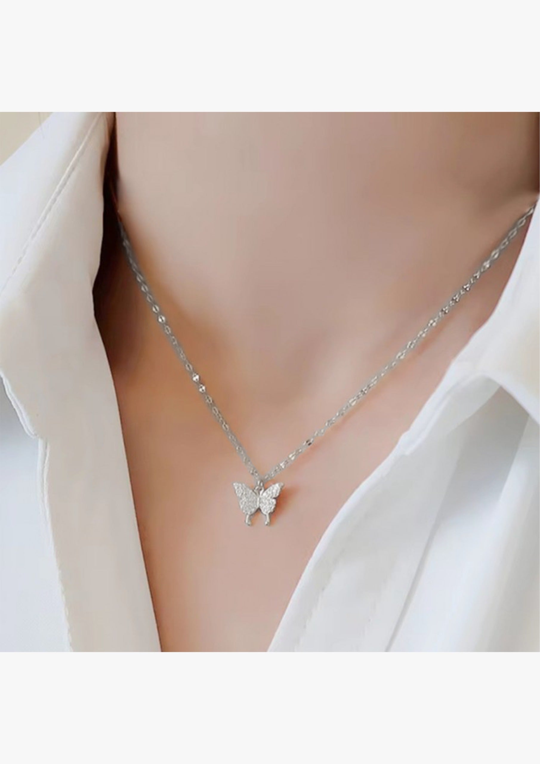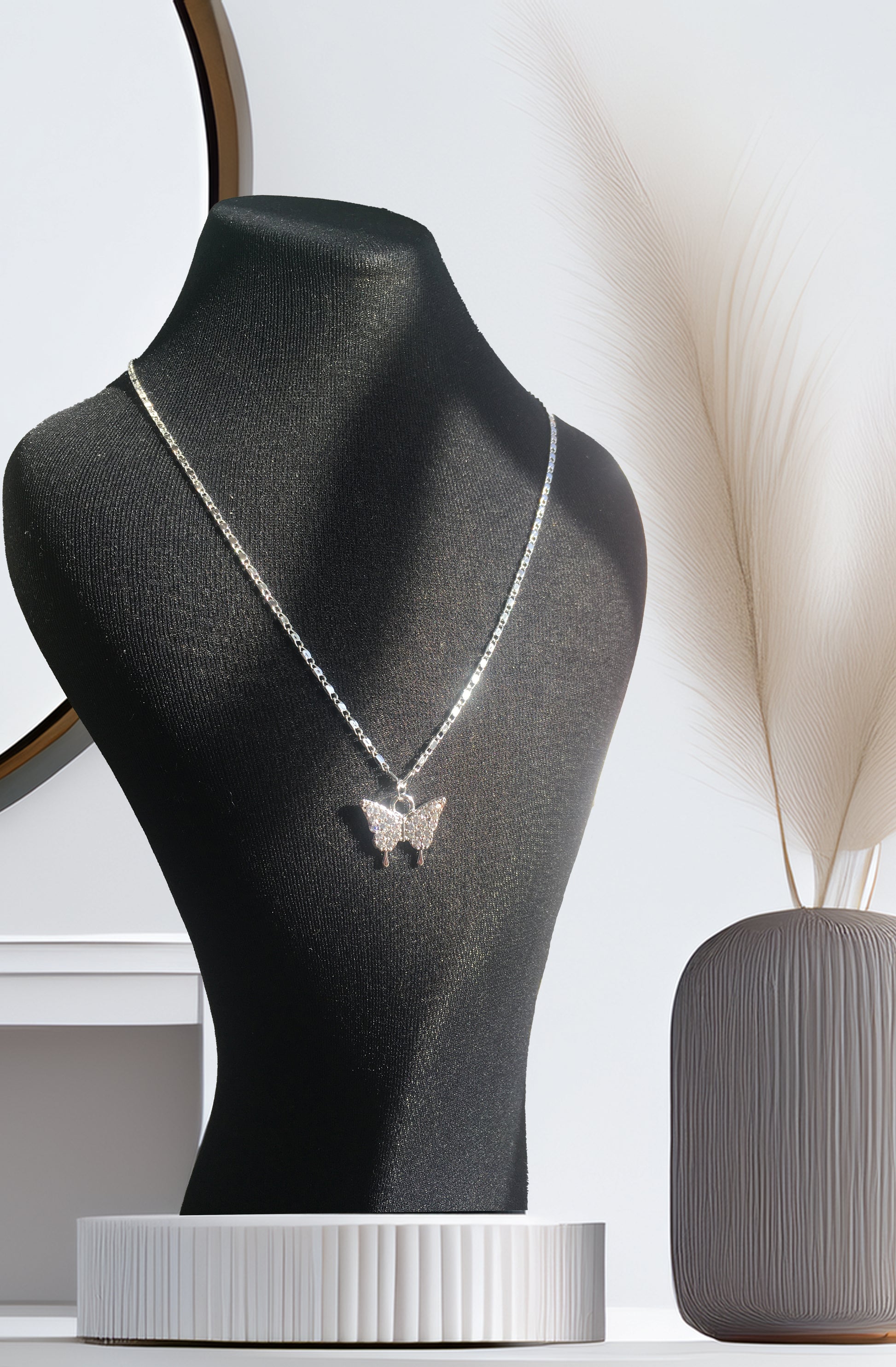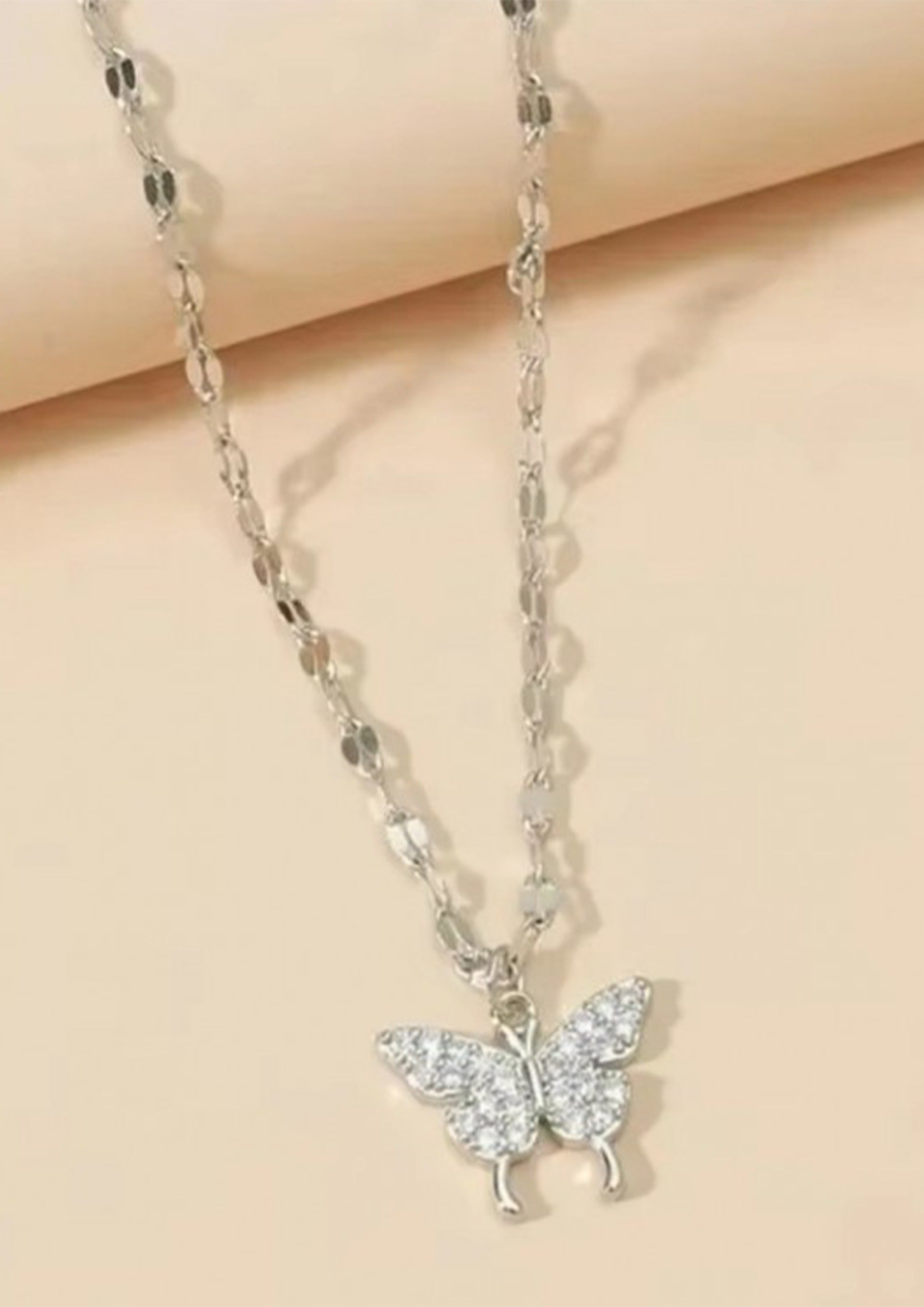 • Çelik Kelebek Kolye, Çelik Gümüş Kolye, Kararmaz Çelik Kelebek Kolye, Zirkon Taşlı Kelebek Kolye