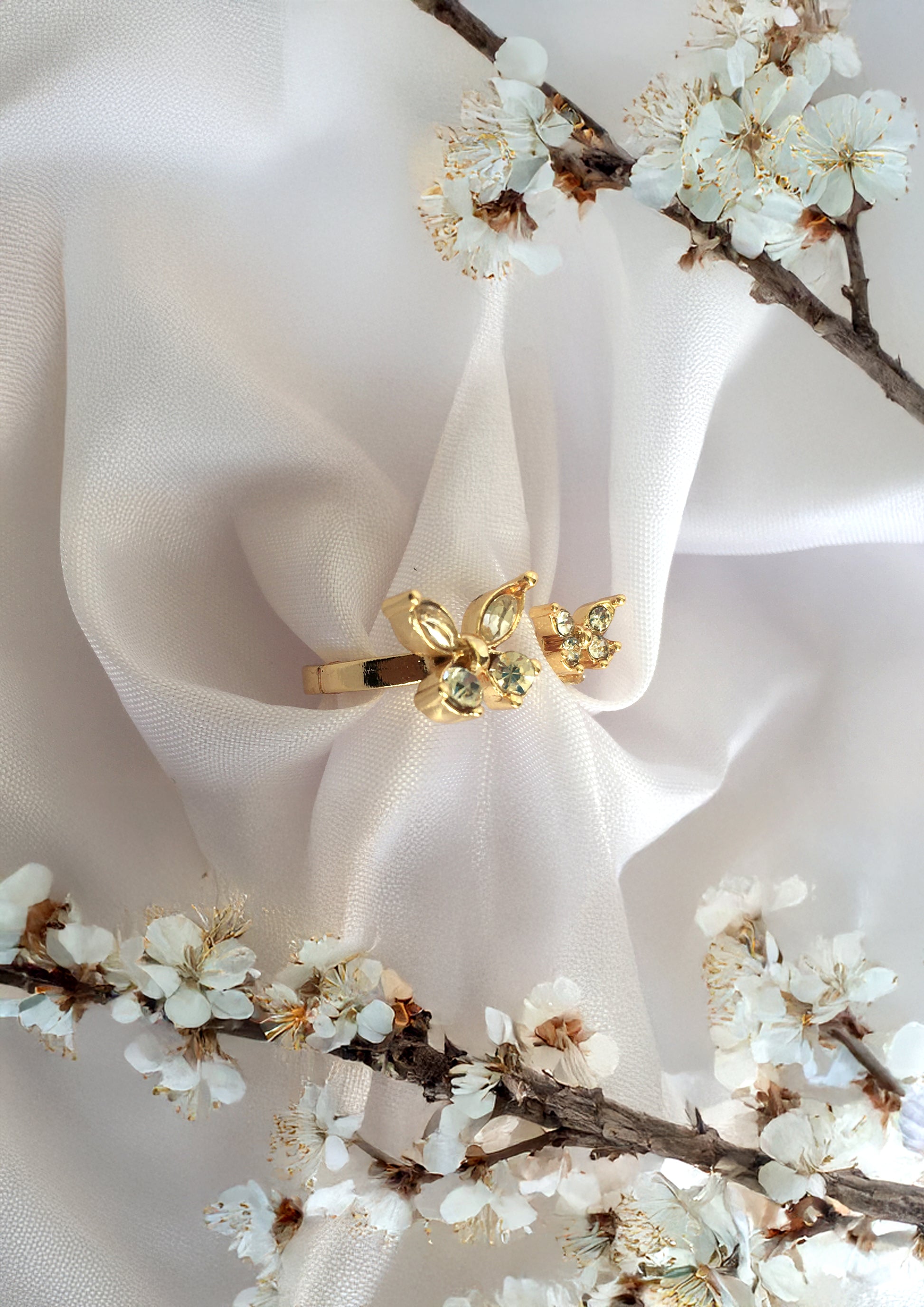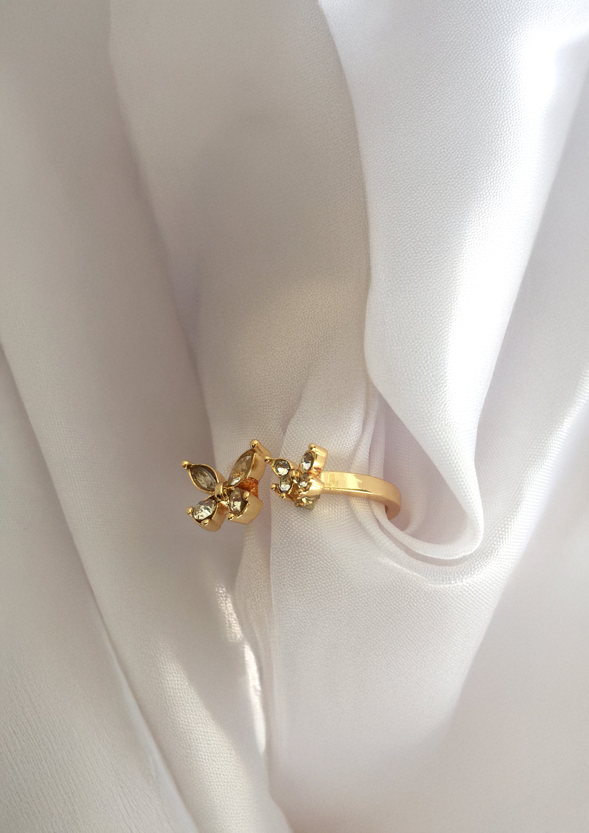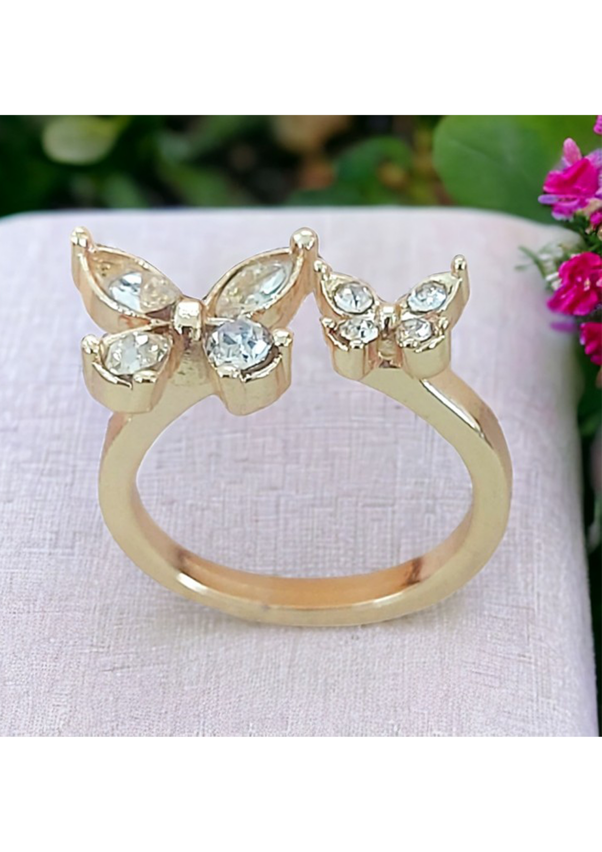 PERLİSS Zarif Kelebek Model Zirkon Taşlı Ayarlanabilir Yüzük, Gold Kelebek Model Yüzük
