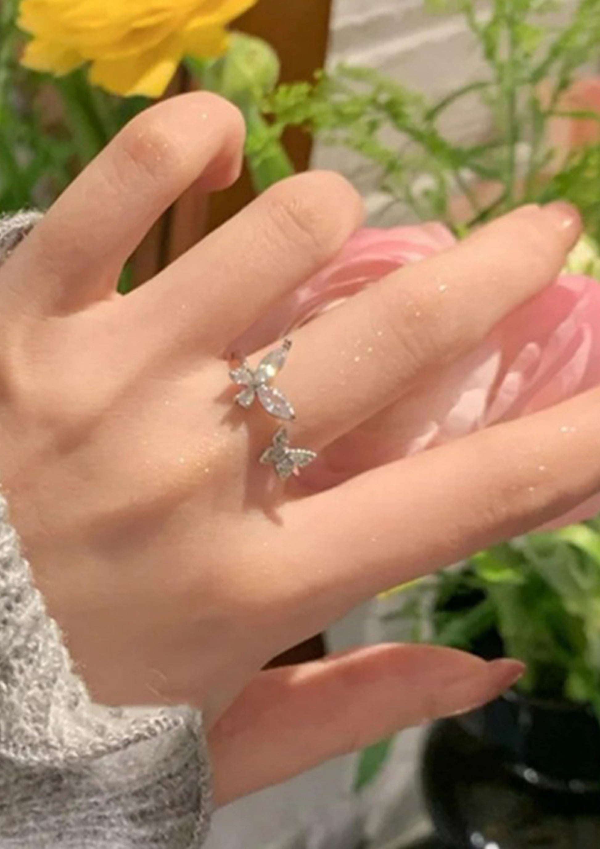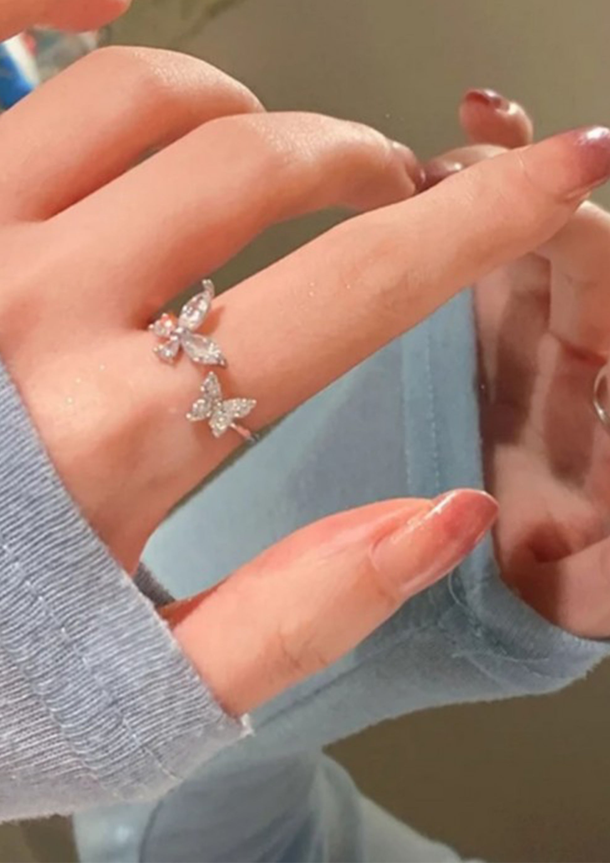 - Zirkon Taşlı Zarif Kelebek Model Yüzük, Ayarlanabilir Gold Yüzük, Ayarlanabilir Gümüş Yüzük