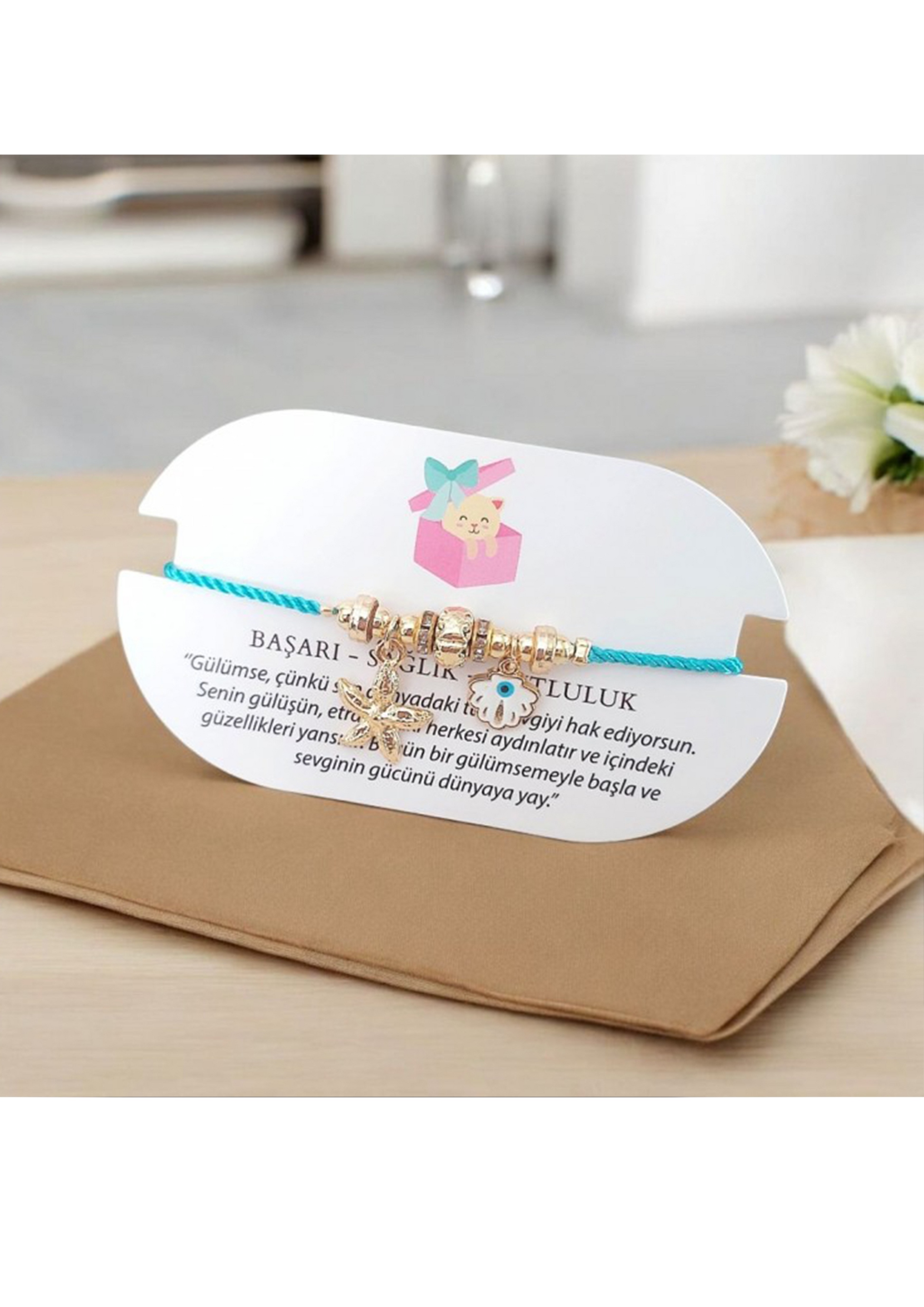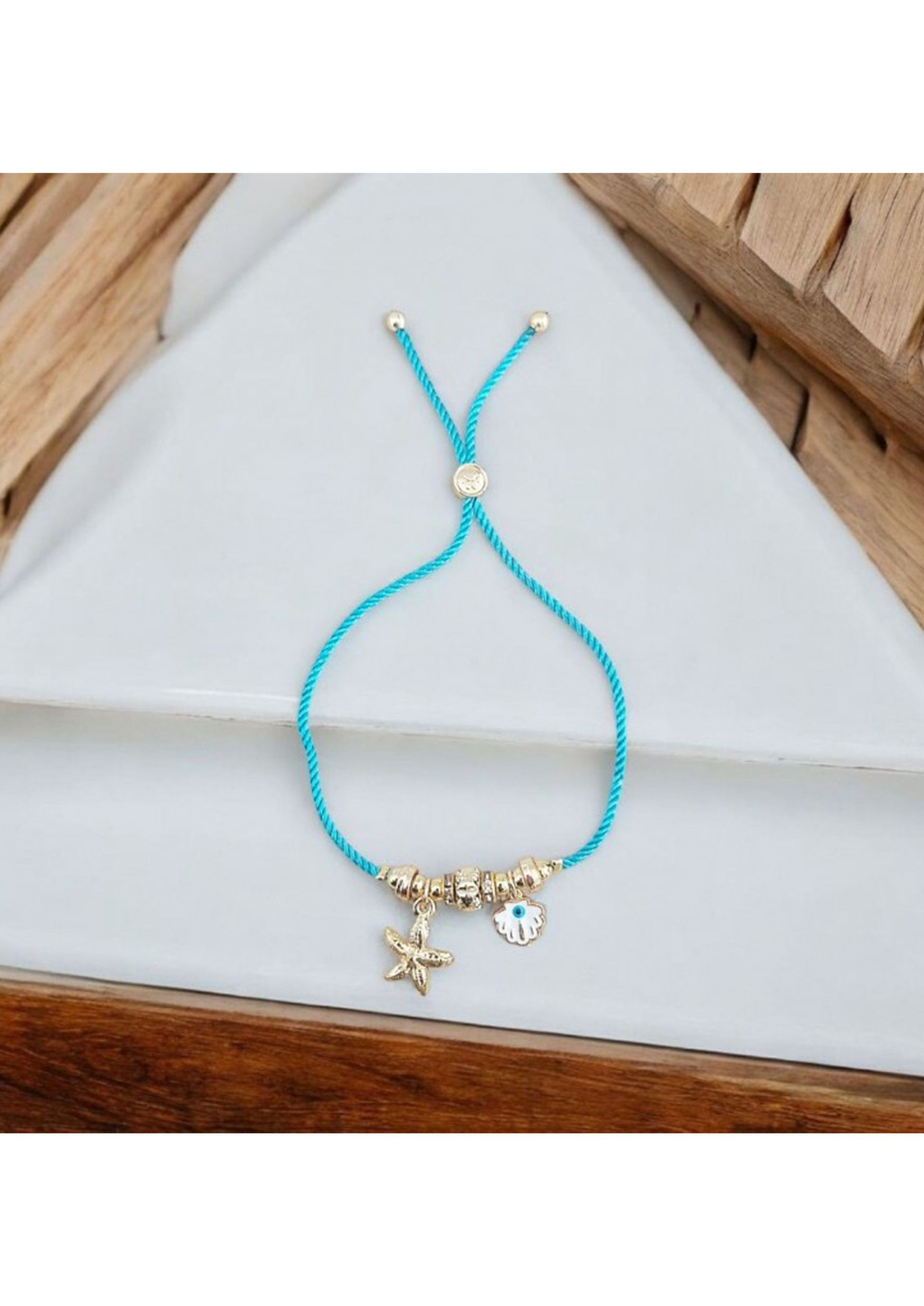 PERLİSS Zirkon Taşlı Deniz Yıldızı ve Midye Charm Bileklik, Mavi Renk Ayarlanabilir Kordon, Altın Kaplama Kararmaz Bileklik