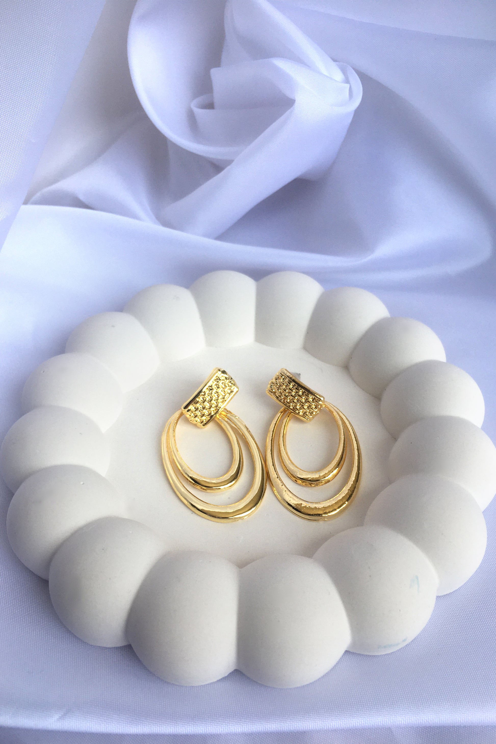 - Oval Küpe, Gold Kaplama Oval Sarmal Küpe, Zirkon Taşlı Oval Küpe