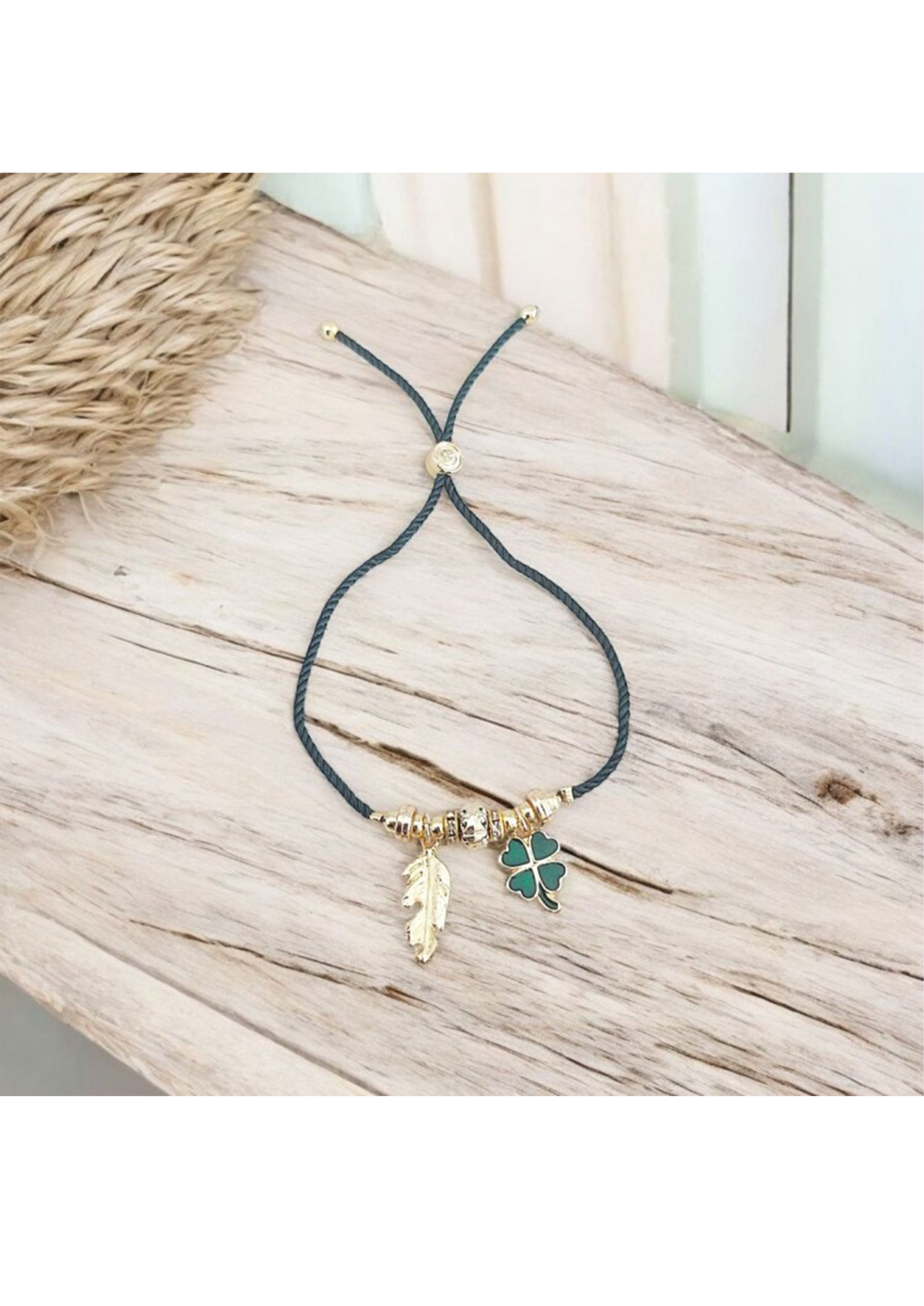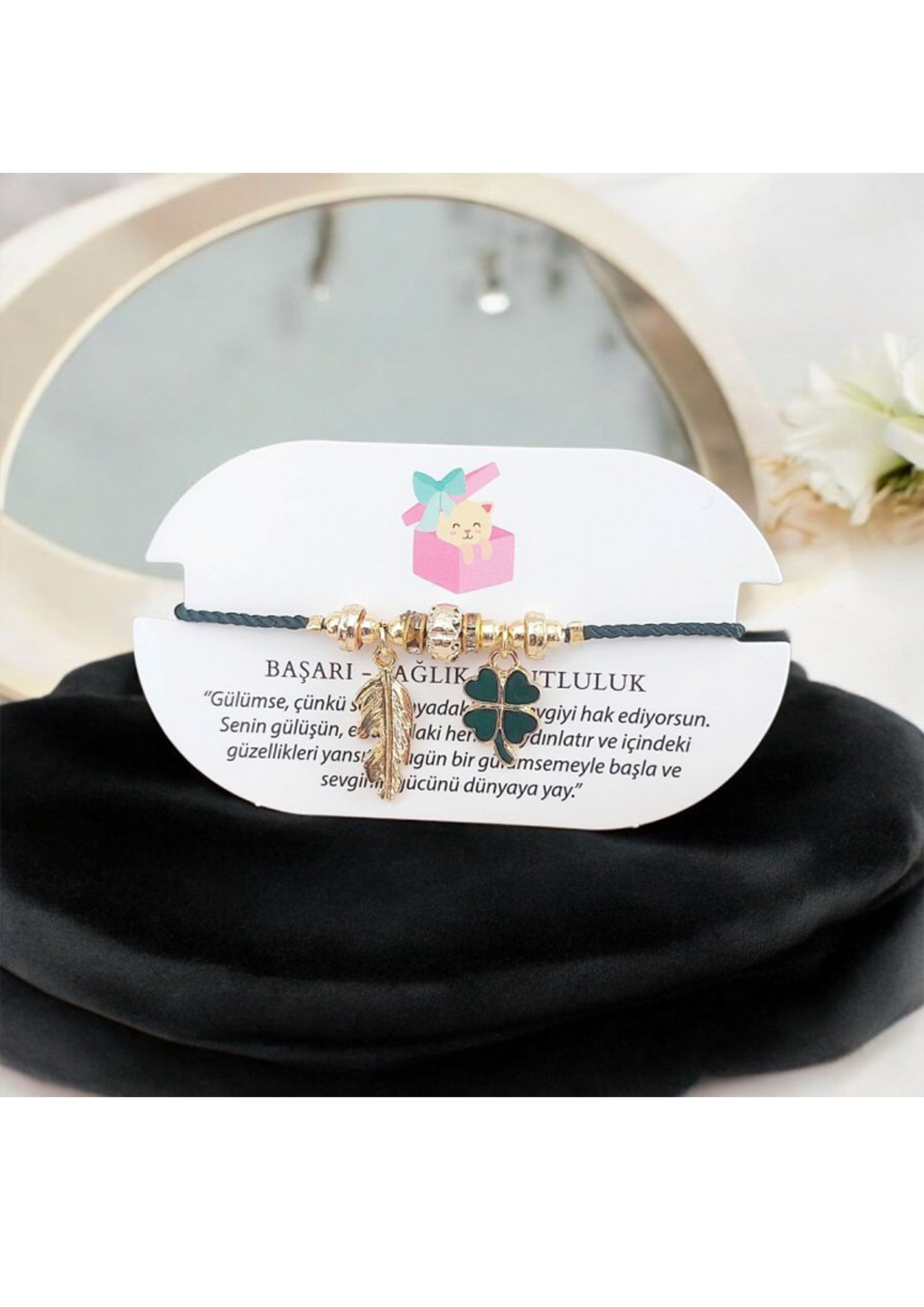 PERLİSS Zirkon Taşlı Yaprak ve Yonca Charm Bileklik, Yeşil Renk Ayarlanabilir Kordon, Altın Kaplama Kararmaz Bileklik
