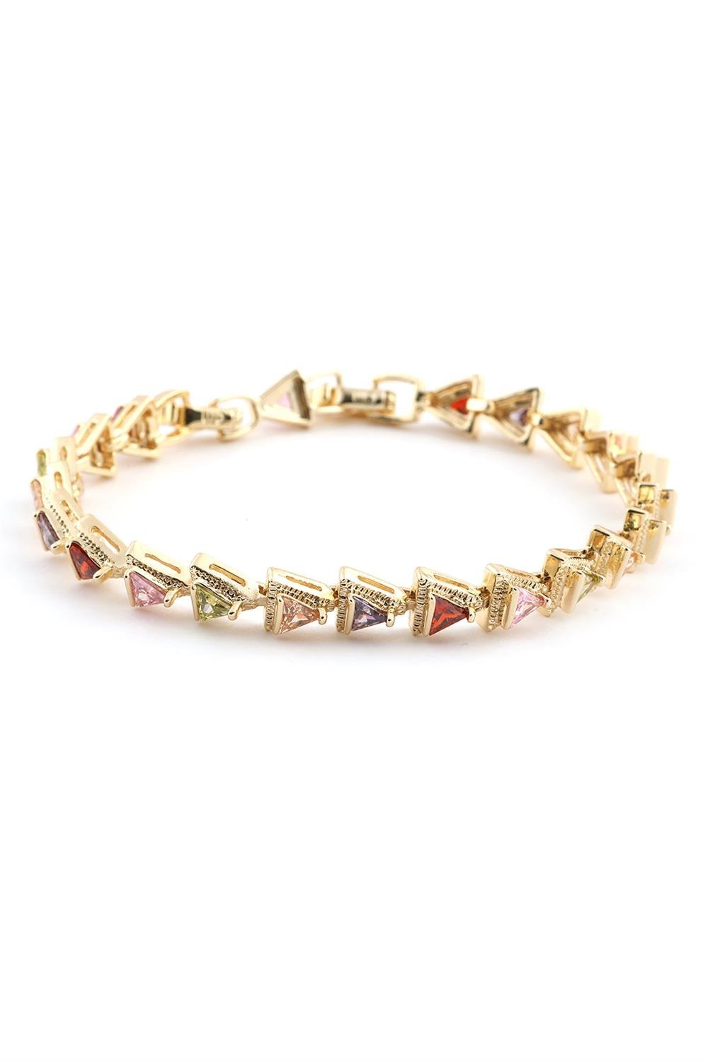 VIP 14K Gold Üçgen Renkli Taşlı Bileklik