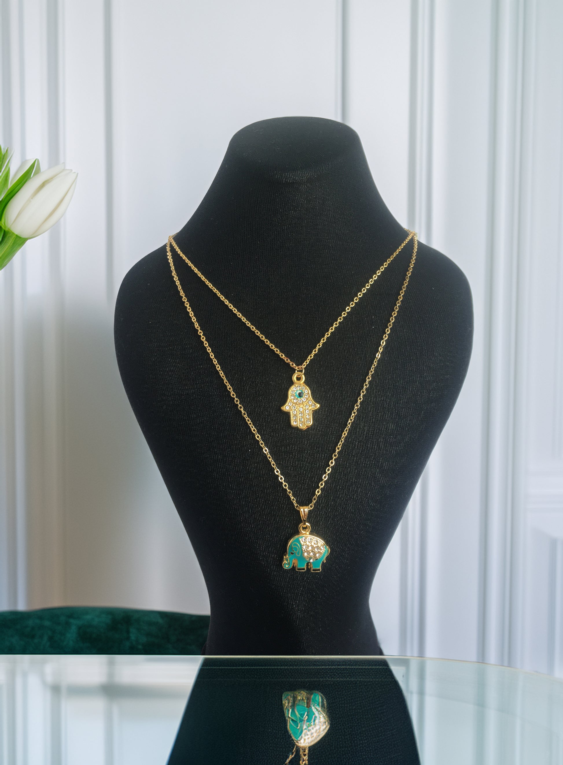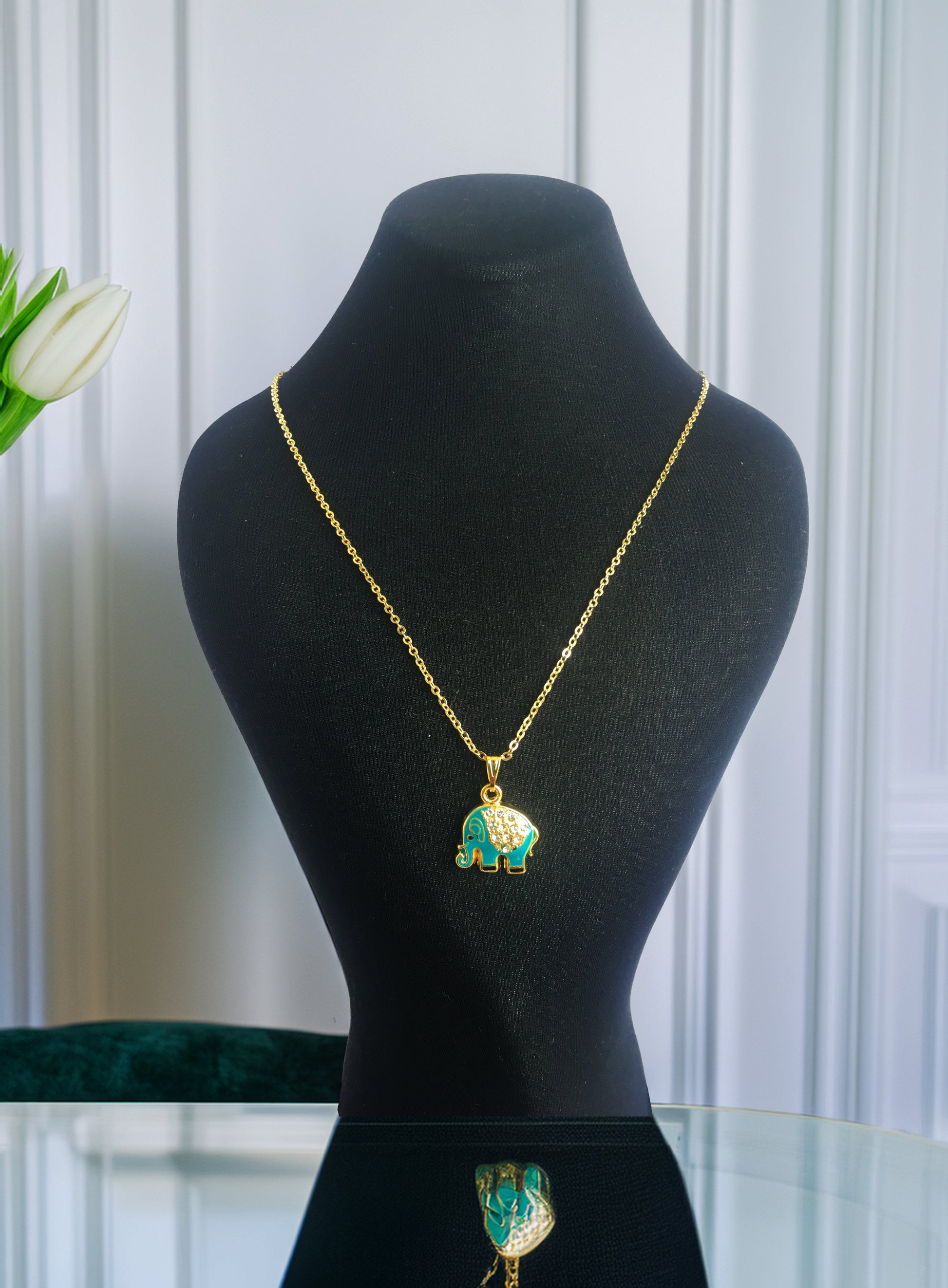 - Zirkon Taşlı Turkuaz Fil Kolye, Gold Kolye, Nazar Boncuklu El Kolye